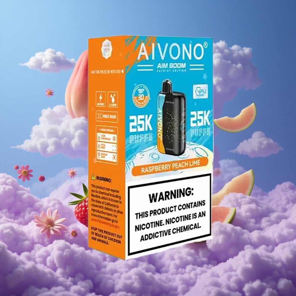 Aivono AIM BOOM 25000 Puffs 0-5% Nikotin 28ml E-væske Kapacitet Hindbær Fersken Lime