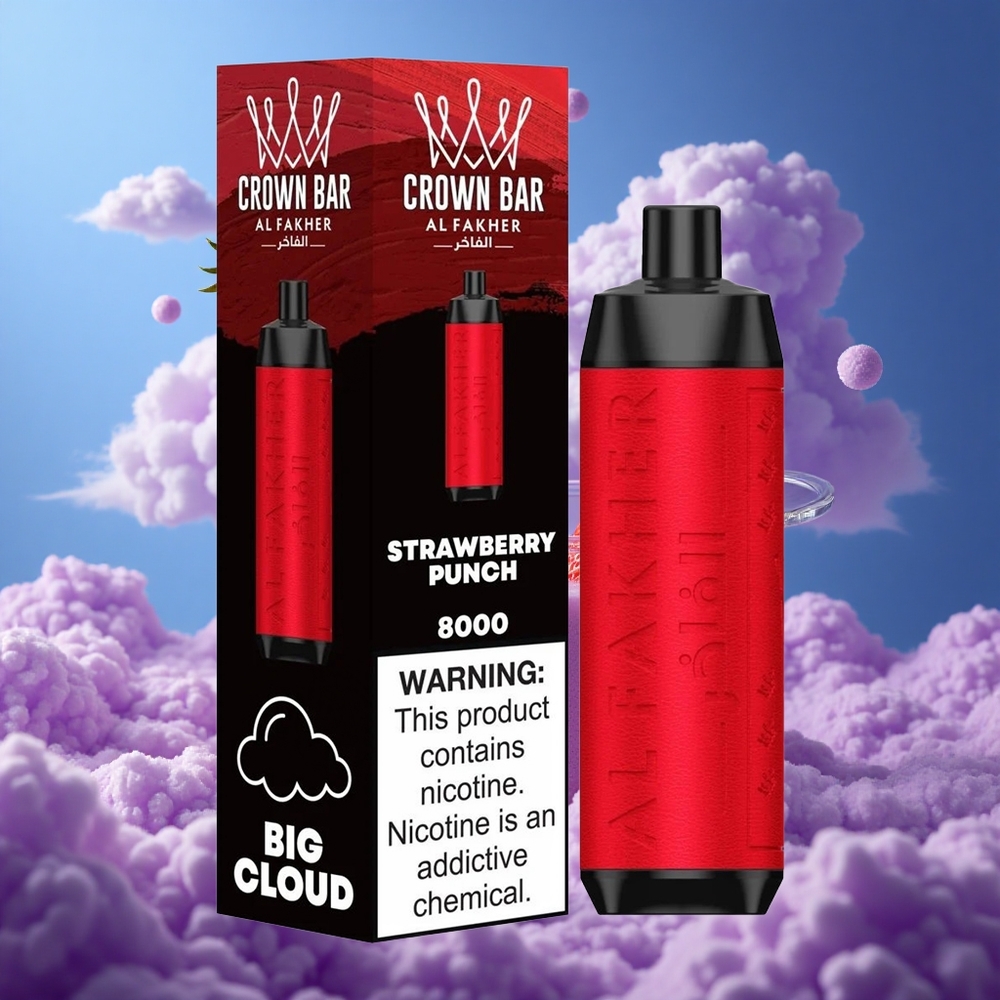 Al Fakher Crown Bar 8000 Crystal Vape til engangsbrug Jordbær Punch (600mAh, 18ml)