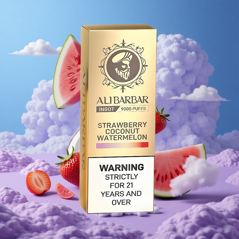 Alibarbar Ingot 9000 Puffs Jordbær Kokos Vandmelon 22ml E-væske Kapacitet 2350mAh batteri