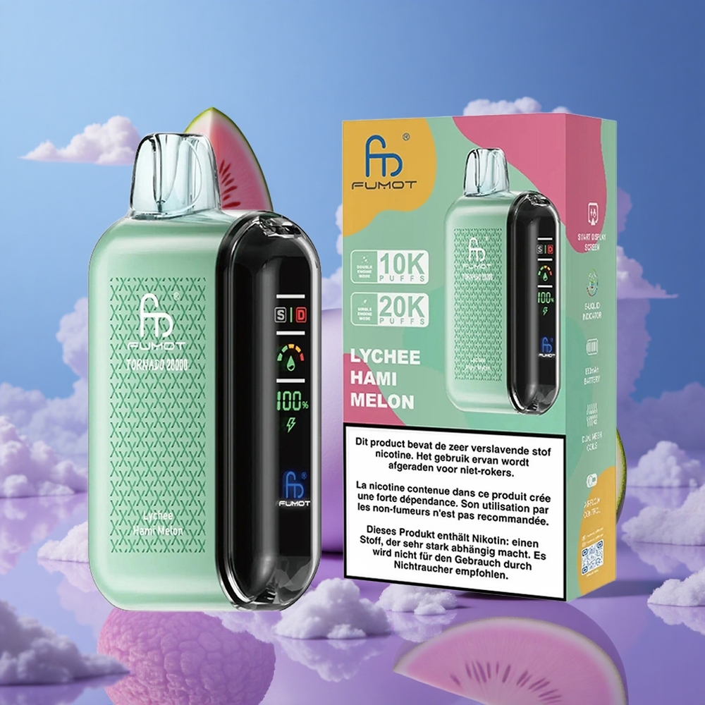 Fumot Tornado 20000 Puffs Dobbelt mesh spole 20ml 850mAh Smarthærd Litchi Hami Melon