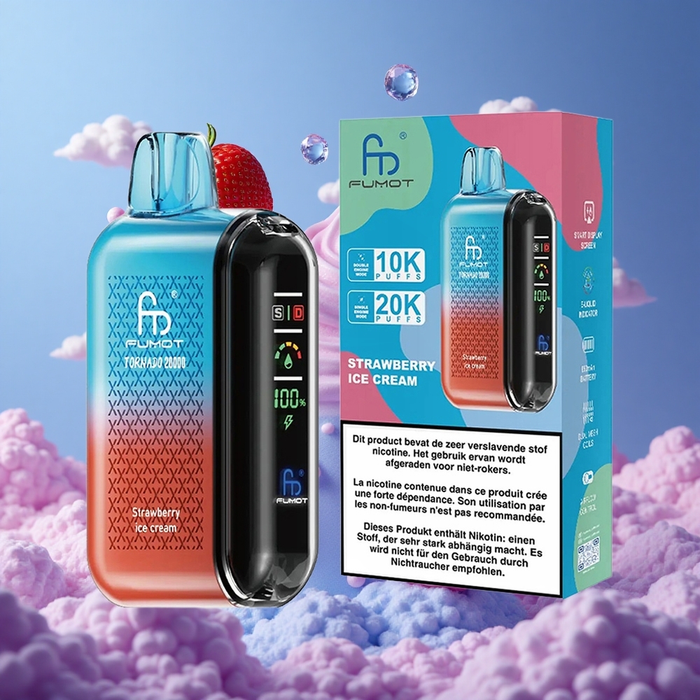 Fumot Tornado 20000 Puffs Dobbelt mesh spole 20ml Jordbær Is